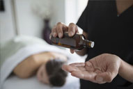 Массажист, осуществляющий ароматерапевтический массаж, добавляет смесь эфирных масел, выбранную вами, в базисное массажное масло и аромалампу. Положительное воздействие эфирных масел оказывается не только при нанесении на кожу, но и при вдыхании. Выбор эфирного масла зависит от желаемых результатов.